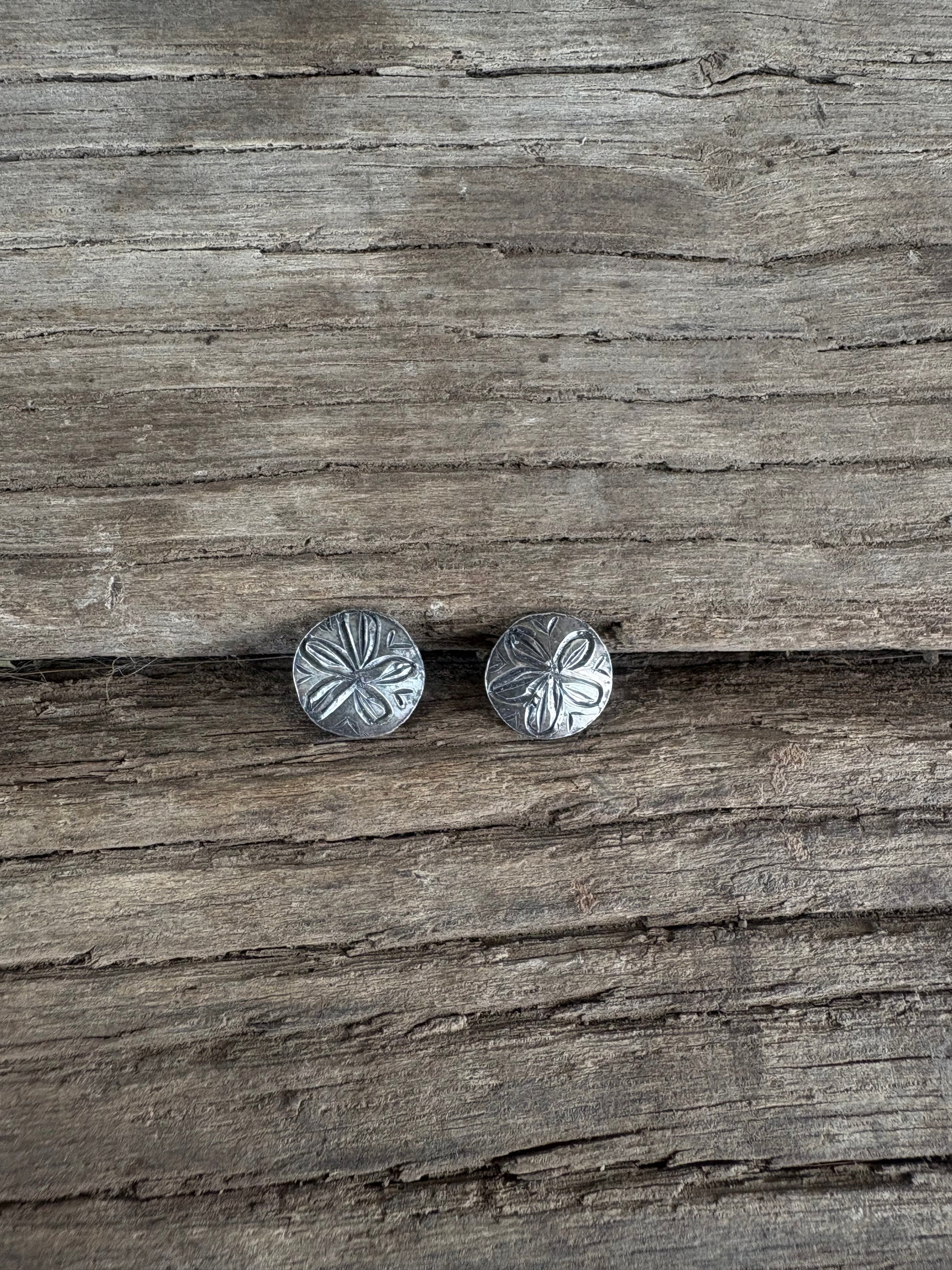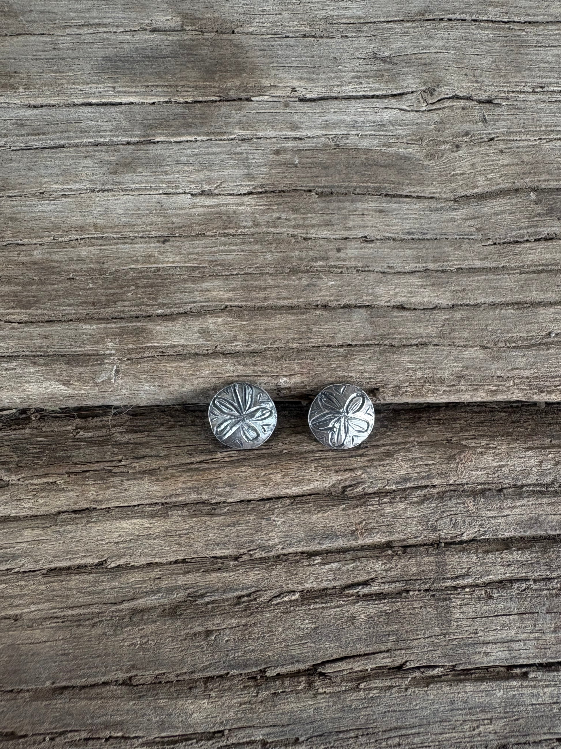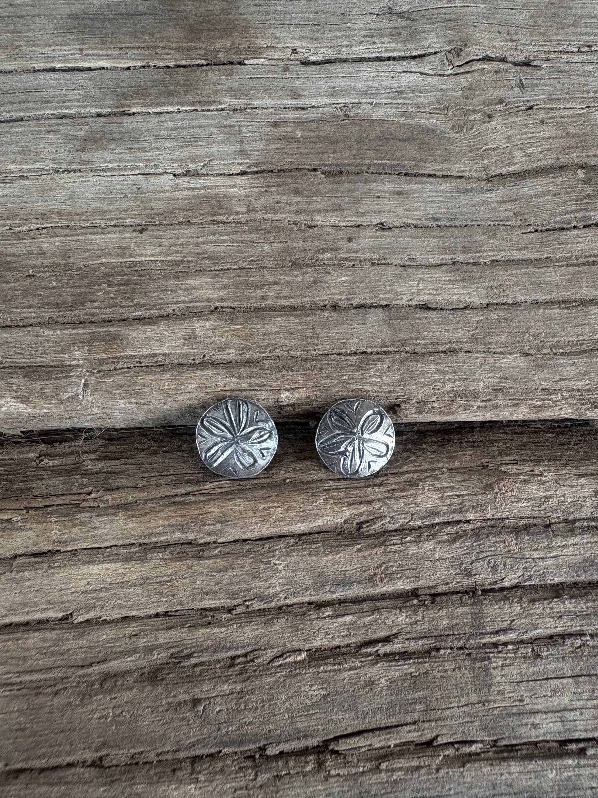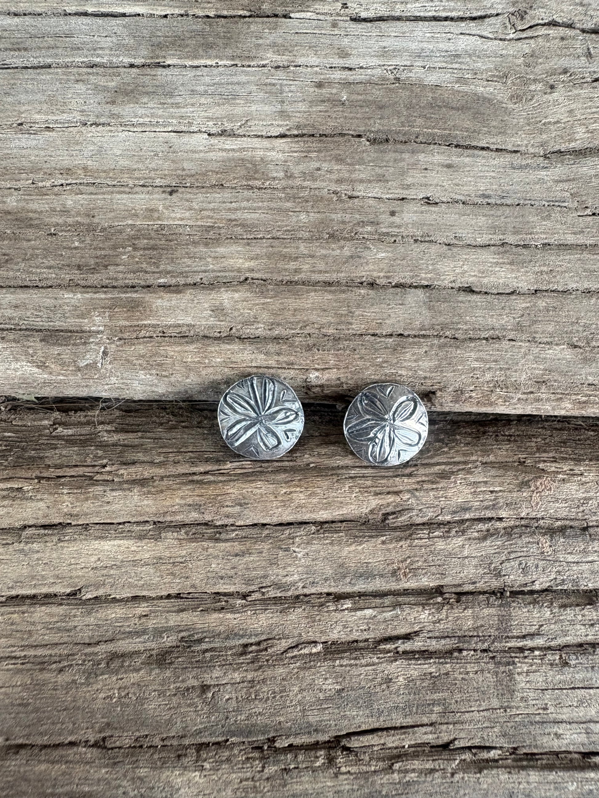 The “Nova” hand engraved sand dollar flower all on 20 gauge Sterling Silver studs